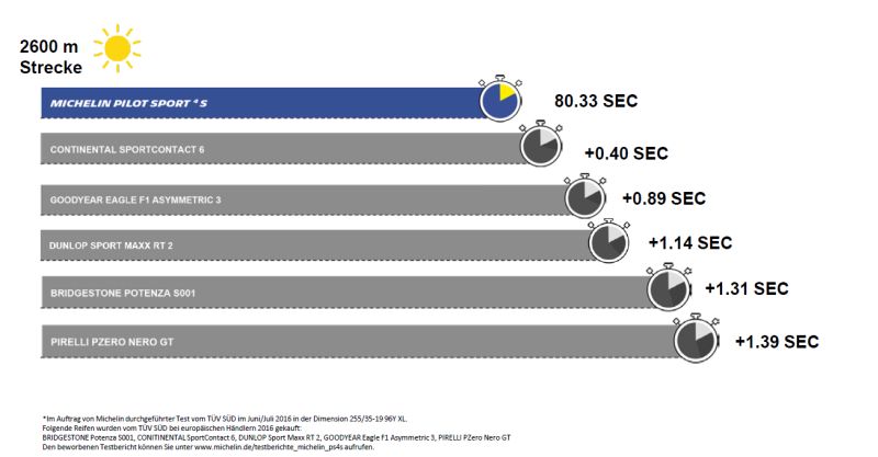 Wie Michelin außerdem betont, habe sich der Michelin Pilot Sport 4 S im Vergleichstest der unabhängigen Sachverständigenorganisation DEKRA auch durch die höchste Laufleistung ausgezeichnet.