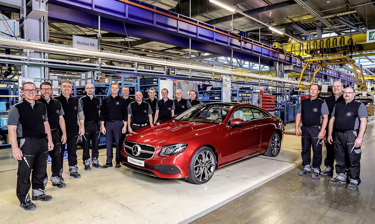 Im Mercedes-Benz Werk Bremen hat die Serienproduktion des neuen E-Klasse Coupés begonnen. Das jüngste Mitglied der E-Klasse-Baureihe folgt auf die Limousine, das T-Modell und die Offroad-Variante All Terrain, die seit dem vergangenen Jahr im Werk Sindelfingen vom Band laufen. Außerdem wird die Langversion der neuen E-Klasse für den chinesischen Markt im Werk Peking gebaut.