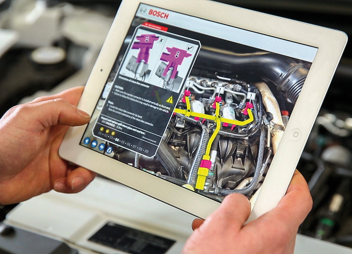 Künstliche Intelligenz, Cloud und Blockchain – wie Lösungen mit intelligent vernetzter Bosch-Technik den Lebensalltag verändern, zeigte Denner an einem Beispiel: Ein Auto bekommt durch Steinschlag einen Sprung in der Seitenscheibe. Die Werkstatt erhält über die Cloud automatisch eine Nachricht und kann sich bereits auf die Reparatur vorbereiten. Dank vernetzter Logistik und vernetzter Gabelstapler steht das Austauschteil bereits bereit, wenn der Kunde ankommt. Der Mechaniker lässt sich die Anleitung zur Reparatur über eine Augmented-Reality-Brille einblenden, so dass er das Ersatzteil viel einfacher und schneller als sonst einsetzen kann. Positiver Effekt für den Autofahrer: Er kann nach kurzer Wartezeit mit dem eigenen Auto weiterfahren, statt es in den Folgetagen abholen und in der Zwischenzeit auf eine kostspielige Alternative ausweichen zu müssen.